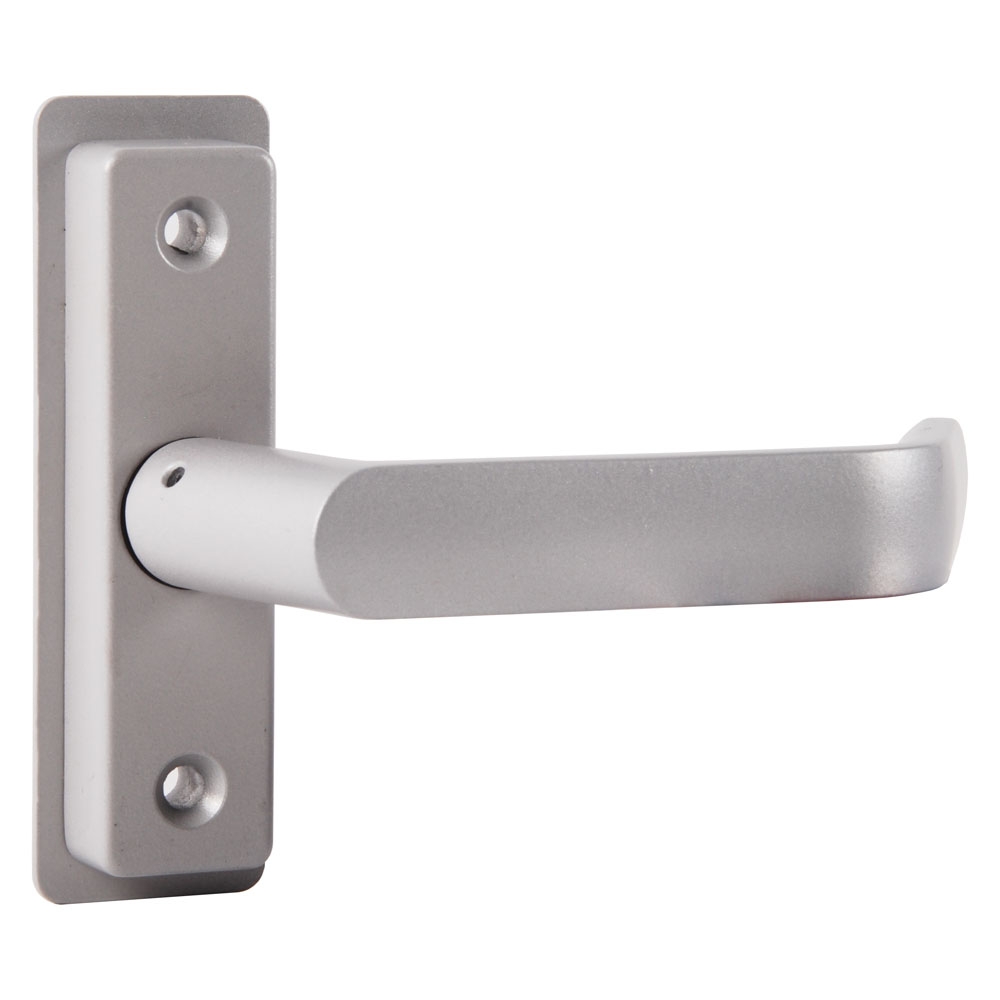 European styling of 4568 and 4569 offers a generous hand grip with shank offset from the narrow stile jamb for hand safety. Rugged construction ensures dependable performance, with a high-wear spring to return the handle to position after use.
