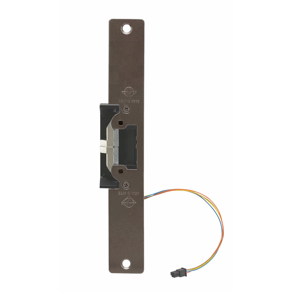 This non-handed strike features an ultra-compact design and adjustable stainless steel keepers with over 1,500 lbs [680.4 kg] of holding force in fail secure mode. The strike releases electrically with up to 25 lbs of door preload. Single solenoid operates on 12/16/24 VDC power. Remote electrical control of narrow stile aluminum doors equipped with an Adams Rite 4500, 4700 (discontinued), or 4900 Deadlatch or cylindrical lockset with 1/2" [12.7 mm] to 5/8" [15.9 mm] latchbolt projection. Electrical actuation unlocks the keeper, releasing the latchbolt so the door may be opened without operating the latch itself.