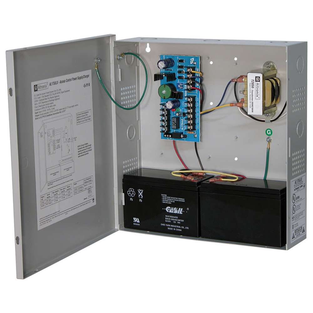Altronix AL175ULX Series switching power supply/charger converts a 115VAC 60Hz input into two (2) individually PTC protected auto-resettable 12VDC or 24VDC outputs.