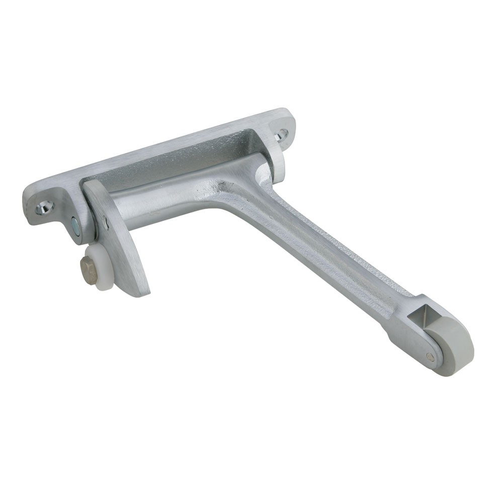 - Nylon roller on short arm glides smoothly over door bracket and strike, ensuring silent operation.