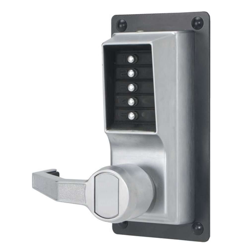 Access Control: Mechanical pushbutton lock eliminates problems and costs associated with issuing, controlling, and collecting keys and cards. Provides exterior access by combination, while allowing free egress with Exit Device (not supplied).