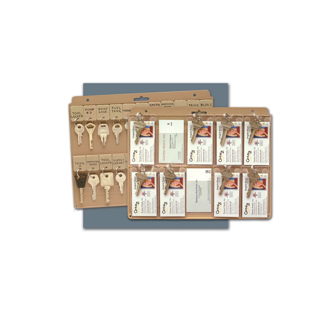 The Key Systems 205 Vel-Key File is a sturdy, plastic panel holding up to 22 Velcro® fastener-backed key tags on two horizontal Velcro® strips. Great for organization, they can be stored in filing cabinets, mounted on the wall, or bound in 3-ring binders. The Card File provides 10 clear pockets for storing business-sized cards along with keys.