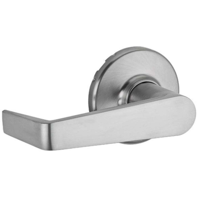 - Privacy/Bed/Bath: Both levers locked or unlocked by ADA turn button inside. Outside lever unlocked by emergency key.