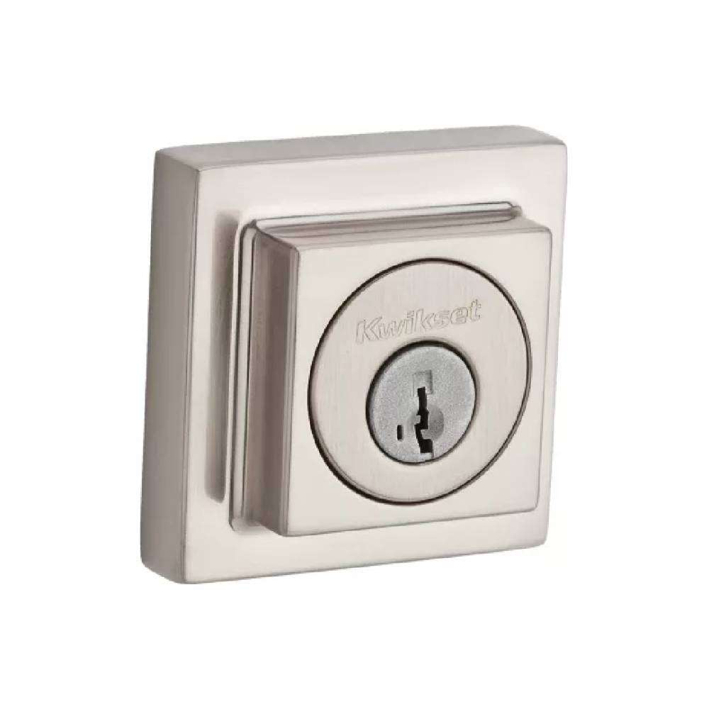 Square deadbolt double cylinder ultramax security clear pack adjustable square corner latch - round corner strike in satin nickel finish. Double cylinder deadbolt with smart key rekeying, grade 1, round corner adjustable latch fits 2-3/8 inch and 2-3/4 inch backsets, ball bearings to prevent drill out, concealed screws, keyed alike in sets of 4, lifetime mechanical warranty, lifetime finish warranty, clear pack. Operated by key on both sides. Signature series' deadbolts feature titanium alloy throwbolt core and ultra-strike for jamb brace. This design includes"bumpguard" for improved security against lock bumping. Door prep: 2-1/8 inch or 1-1/2 inch cross bore, 1 inch edge bore, 1 inch x 2-1/4 inch latch face. Door thickness: 1-3/4 inch. Includes 3 anti-pick top pins. Faceplates: 1 inch x 2-1/4 inch round corner. Strikes: 1-1/8 inch x 2-3/4 inch round corner. Includes ultra-strike door jamb brace with (3) 3 inch screws. Bolt: Brass bolt, full 1 inch throw. Titanium alloy throwbolt core. Ansi/bhma: Grade 1. Deadbolts with"smartkey" (denoted smt) feature allow, in 3 steps, locks to be re-keyed to a spare set of keys. When the spare keys are done being used, the lock can be re-keyed back to the original set of keys; can continually be re-keyed.