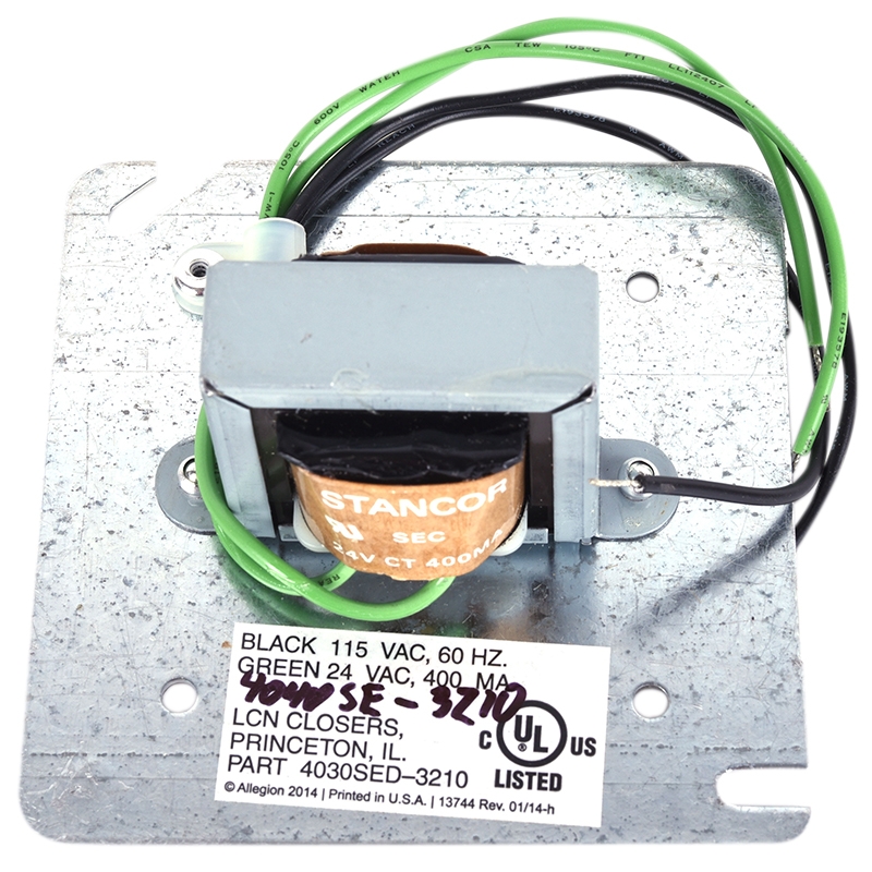 The LCN 4040SE-3210 Se Transformer is a Se Transformer for the 4040SE SENTRONIC® series which includes a heavy duty, non-handed, nonsized closer/holder designed to provide single point hold-open for fire and smoke barrier doors. The door is held open until current interruption releases the holding mechanism and the door closes. Single lever (track) arm closer is specifically designed for interior doors.