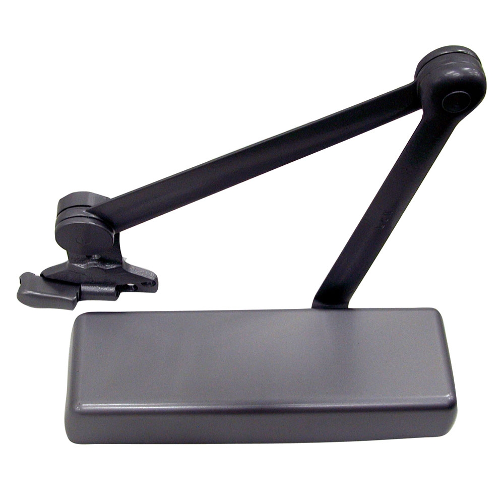 • Spring Cush Arm - Non-handed parallel arm for abusive applications. Features solid forged steel main arm and forearm with spring loaded stop in the soffit shoe.