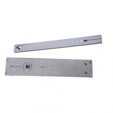 The concealed 6031 Series the "Pacer" is a heavy duty double acting door closer perfectly designed to fit in a narrow aluminum tube frame with minimum 1-3/4" header. The single lever arm and roller assembly of this door closer provides smooth, quiet door control and the choice of finishes and track functions meet virtually all architectural requirements.