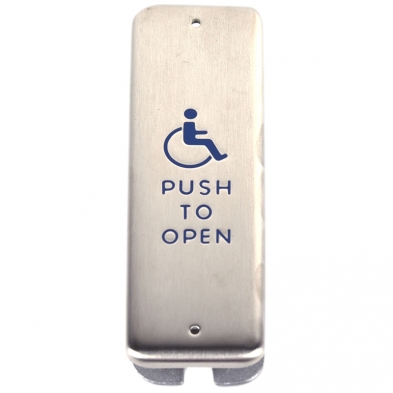 - Hardwired low voltage actuator with rectangular stainless steel touch plate.