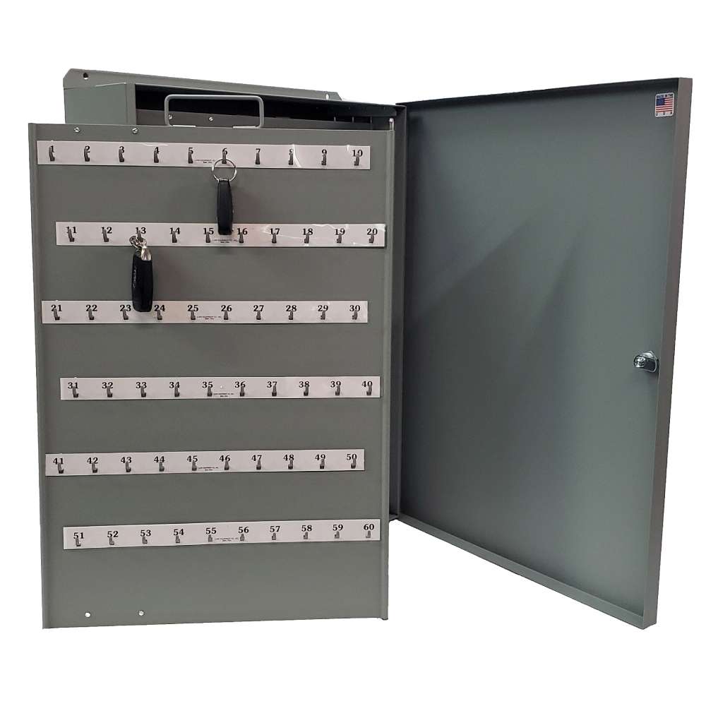 Lund Automotive removable panel expansion provide space for an additional 60 keys. Our 556 removable panel series houses 60-240 hooks with the capability of holding three standard keys or one key fob per hook. The cabinet is made from 18-gauge steel, with 20 gauge panels and a 3 point locking device.