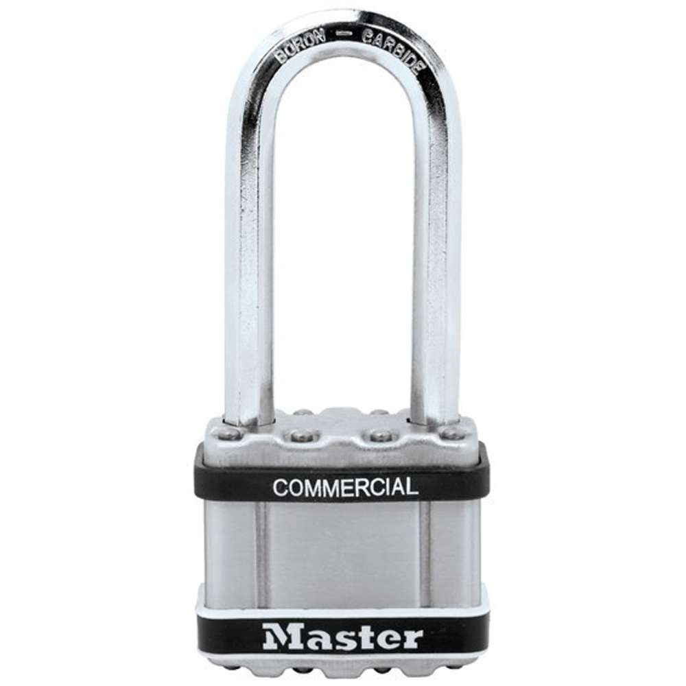 Master Lock Commercial Magnum is a laminated padlock encased in stainless steel for improved weather resistance. The weatherability of stainless steel combined with the strength of our commercial-grade laminated padlock means enhanced security for you. Its octagonal, chrome-plated boron-carbide shackle and dual-ball bearing locking mechanism provide superior strength and protection.