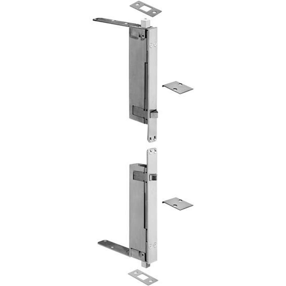 Features: Non-handed. Fully automatic-opening active door retracts top and bottom bolts. Low closing force. Override feature prevents damage to doors or bolts if bolt heads are blocked from entering strikes. Bolt head rods are adjustable up to 1/2". Thermal lock automatically locks the inactive door under high head conditions due to fire. UL Listed.