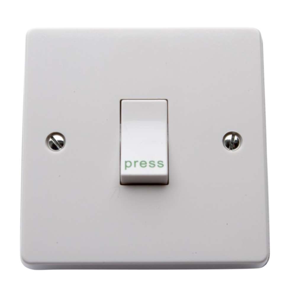 The ROFU 1010 Switch with momentary form "C" contact. White 3-3/8" x 3-3/8" x 1-1/3" deep.