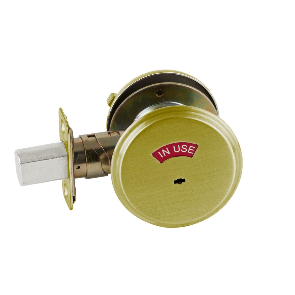 - Door bolt occupancy indicator - Deadbolt thrown or retracted by thumbturn inside. Outside indicator displays “In use” or “Vacant”. Requires 1 1 ⁄2" cross bore prep. Not UL rated. 61-509 Emergency key included