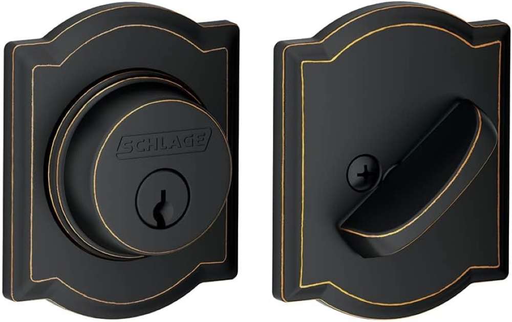 Finish: The Schlage B60 Series Deadbolt comes in Lifetime Brass x Brass (505 x 605), Satin Brass (608), Antique Brass (609), Oil Rubbed Bronze (613), Polished Nickel (618), Satin Nickel (619), Antique Nickel (620), Distressed Nickel (621), Matte Black (622), Polished Chrome (625), Satin Chrome (626), and Aged Bronze (716) finish.