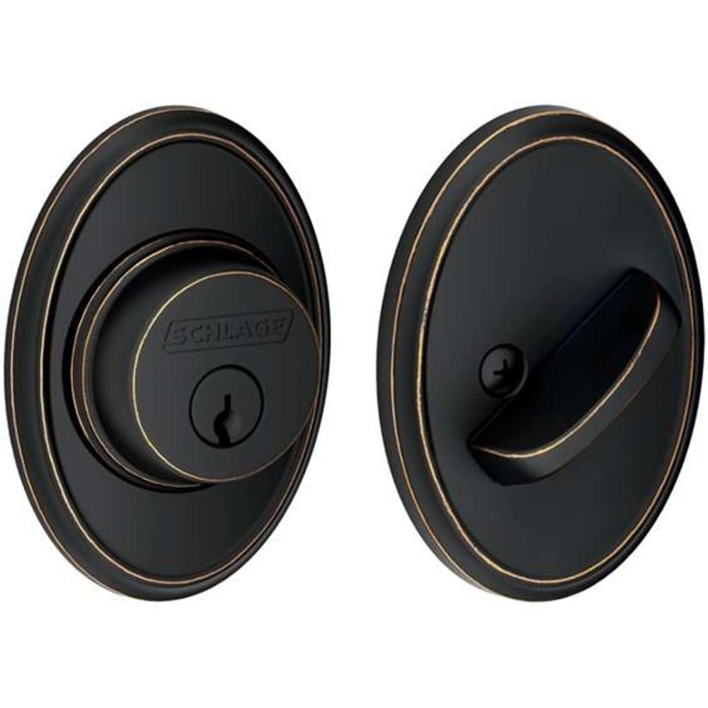 Finish: The Schlage B60 Series Deadbolt comes in Lifetime Brass x Brass (505 x 605), Satin Brass (608), Antique Brass (609), Oil Rubbed Bronze (613), Polished Nickel (618), Satin Nickel (619), Antique Nickel (620), Distressed Nickel (621), Matte Black (622), Polished Chrome (625), Satin Chrome (626), and Aged Bronze (716) finish.