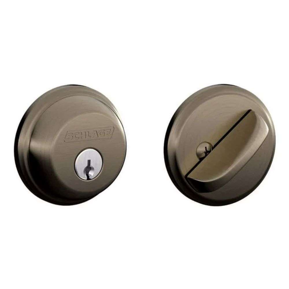 Finish: The Schlage B60 Series Deadbolt comes in Lifetime Brass x Brass (505 x 605), Satin Brass (608), Antique Brass (609), Oil Rubbed Bronze (613), Polished Nickel (618), Satin Nickel (619), Antique Nickel (620), Distressed Nickel (621), Matte Black (622), Polished Chrome (625), Satin Chrome (626), and Aged Bronze (716) finish.