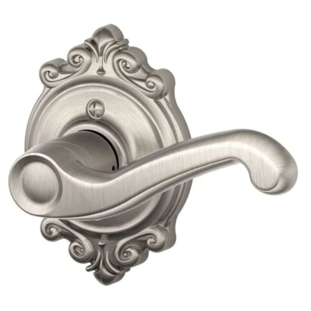 The Schlage Flair is a Grade 2 lever that is part of the Schlage F-Series Collection. The ornate details give the lever a dramatic bit of- yes, flair.