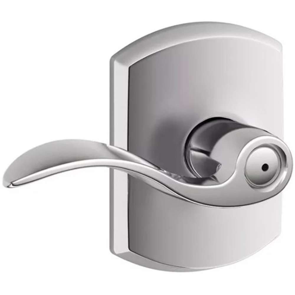 The Schlage Accent is a Grade 2 lever that is part of the Schlage F-Series Collection. The elegant wave-like design effortlessly matches a room's style without overshadowing it.