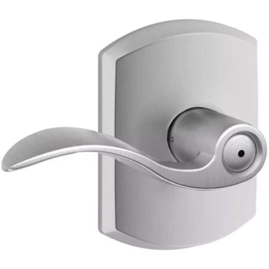 The Schlage Accent is a Grade 2 lever that is part of the Schlage F-Series Collection. The elegant wave-like design effortlessly matches a room's style without overshadowing it.