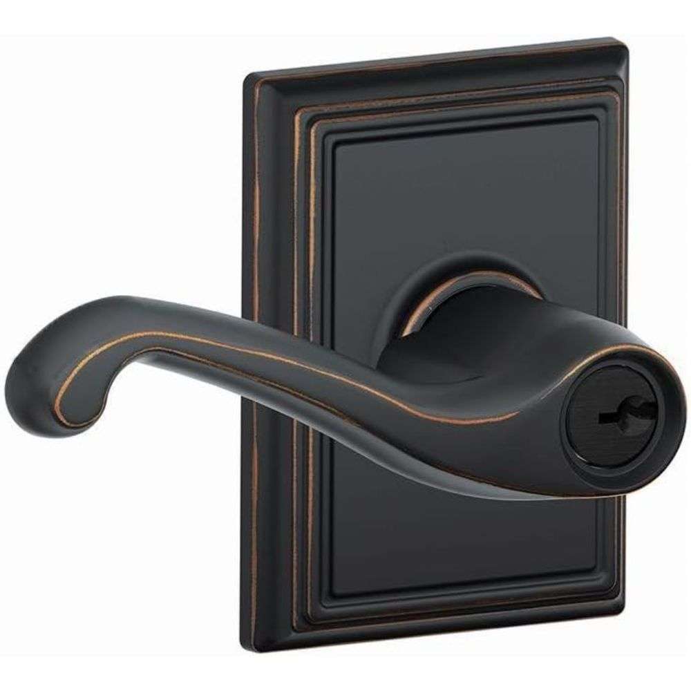 Function: The Schlage Flair Lever is available in Passage (F10 FLA), Privacy (F40 FLA), Keyed Entry (F51A FLA), and Single Dummy (F170 FLA) function.