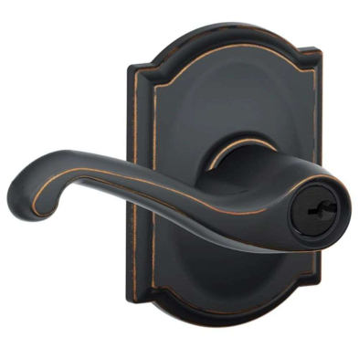The Schlage Flair is a Grade 2 lever that is part of the Schlage F-Series Collection. The ornate details give the lever a dramatic bit of- yes, flair.