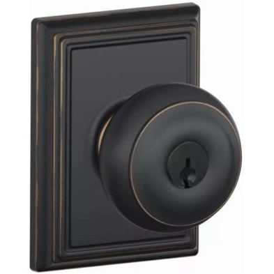 Finish: The Schlage Georgian Knob comes in Satin Nickel (619), Matte Black (622), Polished Chrome (625), and Aged Bronze (716) finish.
