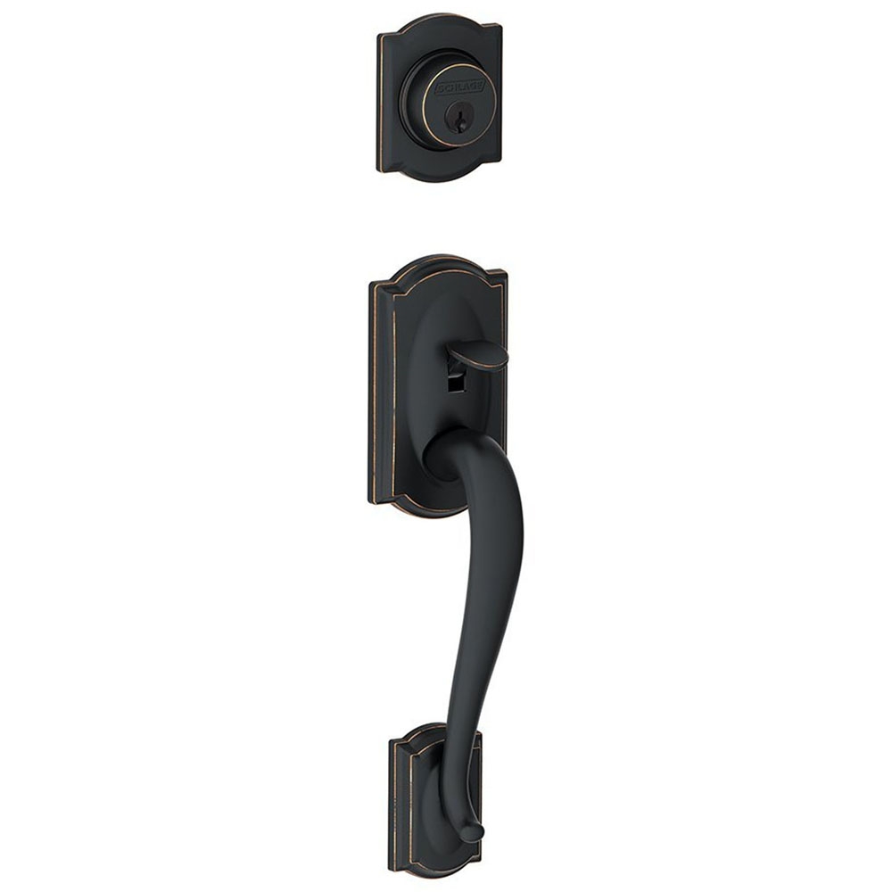 Finish: The Schlage Camelot Handleset comes in Lifetime Brass (505), Brass (605), Antique Brass (609), Satin Nickel (619), Antique Nickel (620), Matte Black (622), Polished Chrome (625), and Aged Bronze (716) finish.