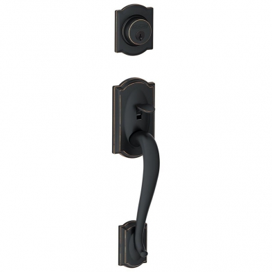 The Schlage Camelot is a Grade 2 handleset that is part of the Schlage F-Series Collection. Schlage has transitioned their FA-Series handlesets to the F-Series. This item comes with a Grade 1 B-Series Deadbolt.