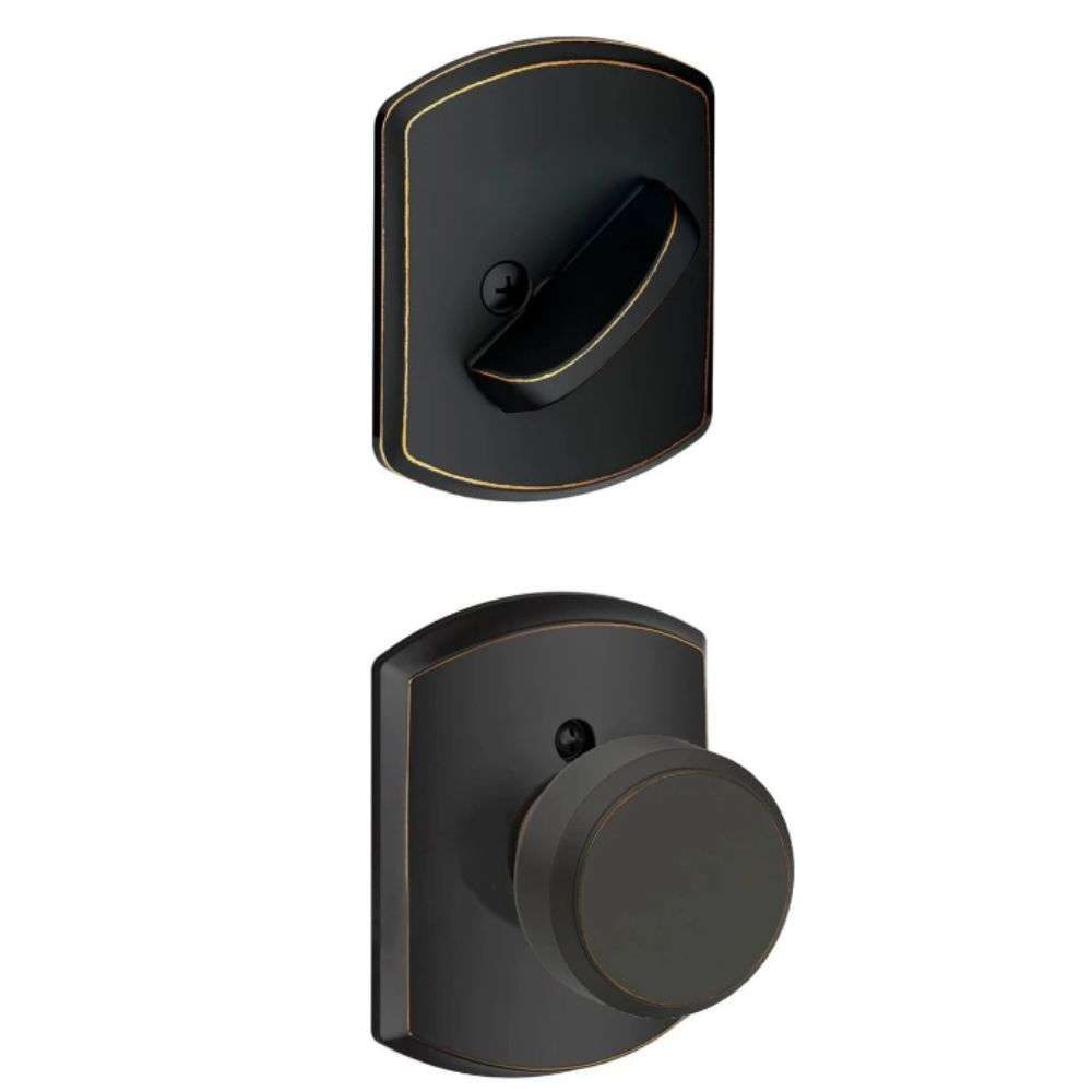 An Interior Pack is the interior trim that syncs with an exterior Handleset to make a complete front door locking unit. Interior Packs consists of a knob or lever trim and matching deadbolt turn. We stock Interior Packs as separate stand-along units so that you can have your choice of any knob or lever in any finish on the inside of your front door. There are two functions of Interior Packs: Single Cylinder (that sync with Single Cylinder Handlesets) and Dummy-Inactive Interior Packs (that sync with Dummy-Inactive Handlesets). While all Schlage Knobs and Levers are available in Interior Pack format, they are specific in terms of matching up to various Handlesets: