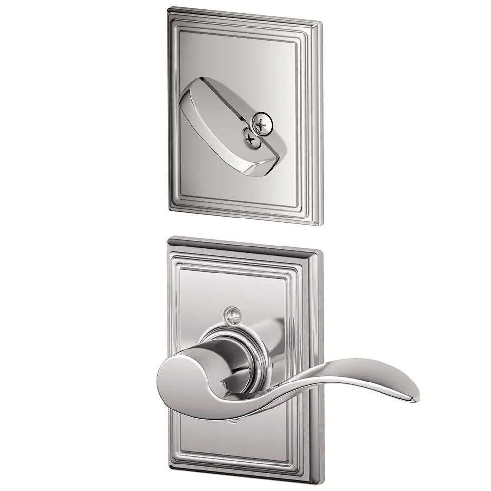 Finish: The Schlage Flair Lever Interior Pack comes in Brass (605), Satin Brass (608), Antique Brass (609), Satin Nickel (619), Antique Nickel (620), Polished Chrome (625), Satin Chrome (626), and Aged Bronze (716) finish.