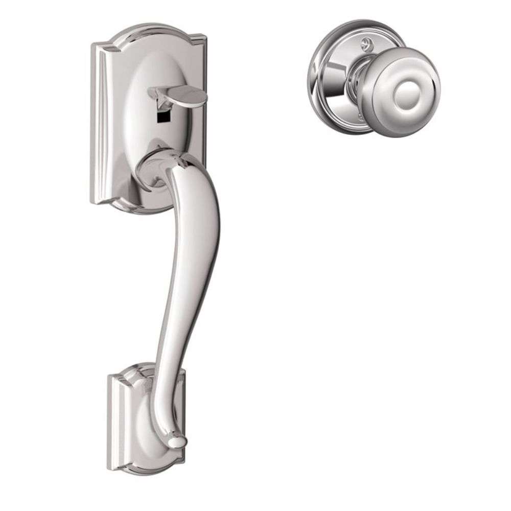 The Schlage FE285 Keypad Camelot is a Grade 2 keypad front entry 1/2 handleset (Lower Portion Only). Combine with the BE365 Keypad Deadbolt to from the FE365 Full Keypad Handleset.
