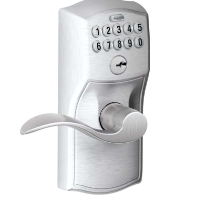 The FE595 Keypad Door Lock gives you the freedom of having the door auto-lock, or remain in the unlocked position until you decide to have it begin auto-locking again. The Flex series is an unbeatable value for residential applications, small office entry doors, or inner office doors. With a number of finishes and lever styles to choose from, you are guaranteed to find a great lock! Combining yesterday's craftsmanship with today's fit and function, the Schlage line of keypad entry locks with flex may just be the last locks you will ever need. Just think, you never again have to fumble, lose, or worry about being locked out. Keyless convenience has enhanced the lifestyles of people everywhere, why not start enjoying it for yourself today!