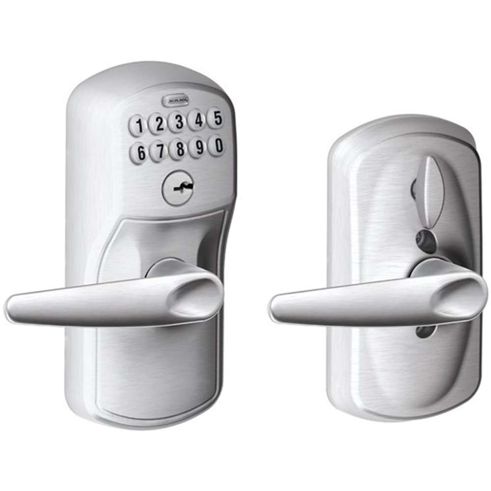 The FE595 Keypad Door Lock gives you the freedom of having the door auto-lock, or remain in the unlocked position until you decide to have it begin auto-locking again. The Flex series is an unbeatable value for residential applications, small office entry doors, or inner office doors. With a number of finishes and lever styles to choose from, you are guaranteed to find a great lock! Combining yesterday's craftsmanship with today's fit and function, the Schlage line of keypad entry locks with flex may just be the last locks you will ever need. Just think, you never again have to fumble, lose, or worry about being locked out. Keyless convenience has enhanced the lifestyles of people everywhere, why not start enjoying it for yourself today!