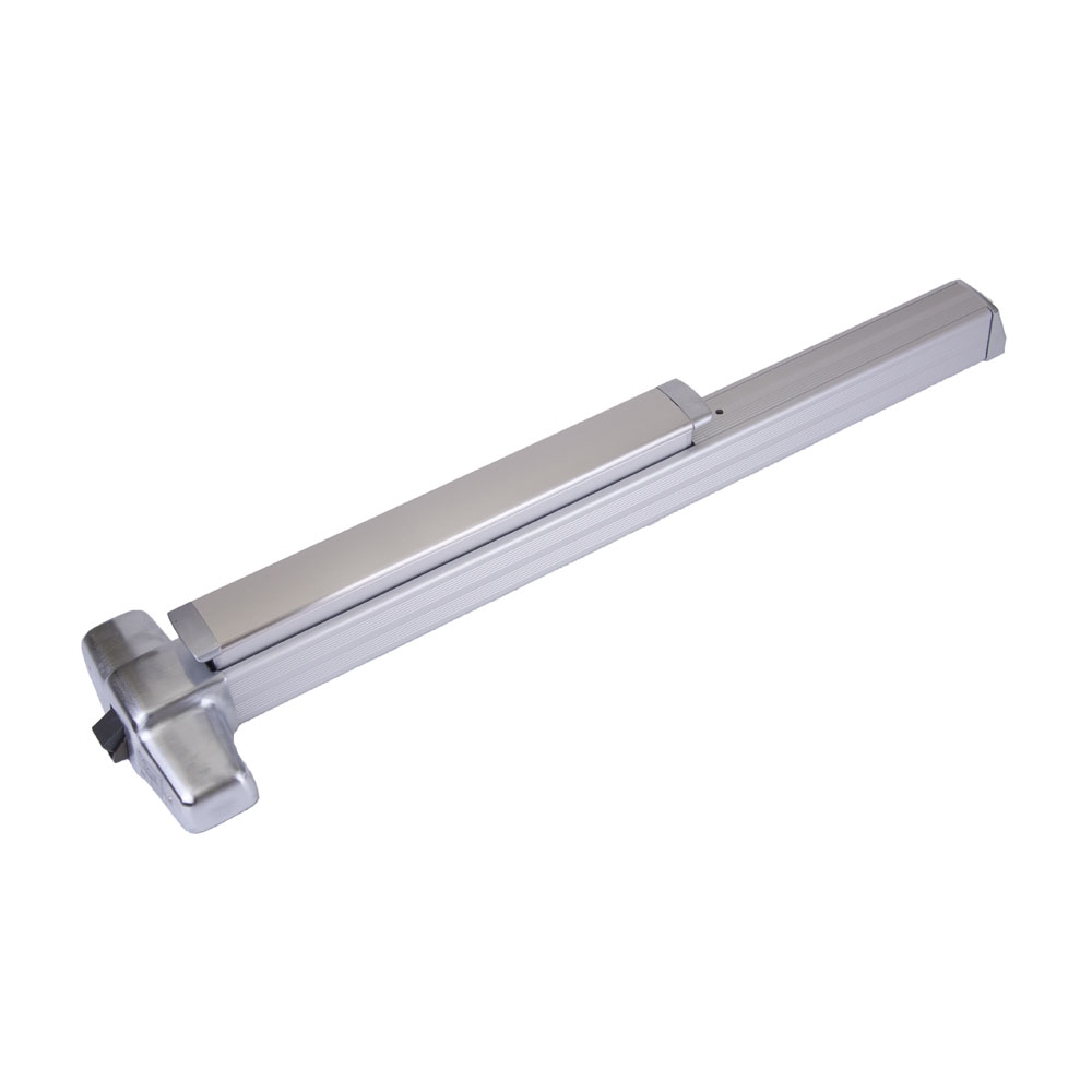 - Rim exit device with 990NL night latch trim, key retracts latch.