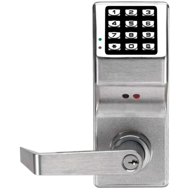 Alarm Lock Trilogy DL2875 - Electronic Digital Cylindrical Pin Lock with Audit Trail and Regal Curved Lever at discounted prices from Locksandsafes.com. This curved lever lock is available in two models, the DL2875 Standard Key Override and the DL2875IC Interchangeable Core. The lock is ideal for use in commercial settings, where it is important to keep track of door activity made by users. The lock can keep track of up to 1000 events/user activities. These logs can then be printed for record keeping purposes.