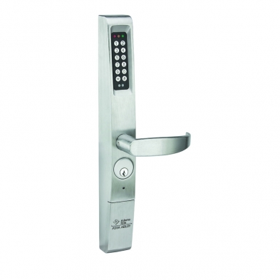 Adams Rite's 3090-02-626 Eforce Keyless Entry lever is a battery operated entry control device. It is compatible with aluminum and hollow metal doors, and provides access control for Adams Rite deadlocks, deadlatches, and exit devices. It can operate in standard, passage, and lockout modes, and all programming can be done via the keypad. Operation is confirmed with LED indicator light and an audible horn sound. This device can accommodate up to 150 users on different levels of a hierarchy as well, suhc as master, supervisor, emergency uses, one-time codes, etc.