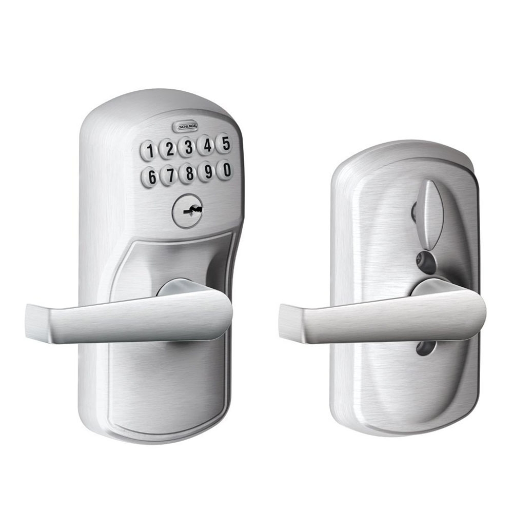 The FE595 Keypad Door Lock gives you the freedom of having the door auto-lock, or remain in the unlocked position until you decide to have it begin auto-locking again. The Flex series is an unbeatable value for residential applications, small office entry doors, or inner office doors. With a number of finishes and lever styles to choose from, you are guaranteed to find a great lock! Combining yesterday's craftsmanship with today's fit and function, the Schlage line of keypad entry locks with flex may just be the last locks you will ever need. Just think, you never again have to fumble, lose, or worry about being locked out. Keyless convenience has enhanced the lifestyles of people everywhere, why not start enjoying it for yourself today!