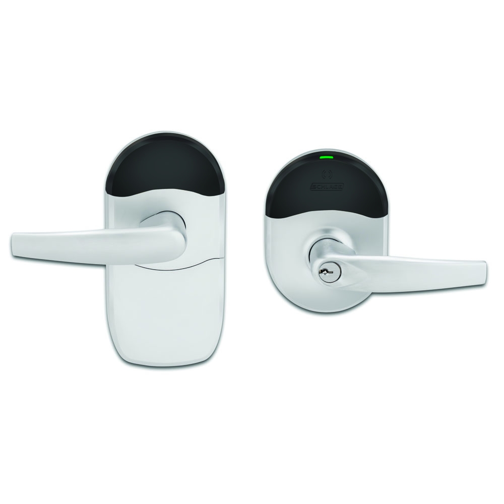 The Schlage® NDE wireless cylindrical lock is designed to affordably extend electronic access control deeper into the building beyond traditional perimeter and high security openings. And now Schlage offers the NDE wireless lock with a mobile enabled option that gives users the security and convenience of using a smart device to gain access.