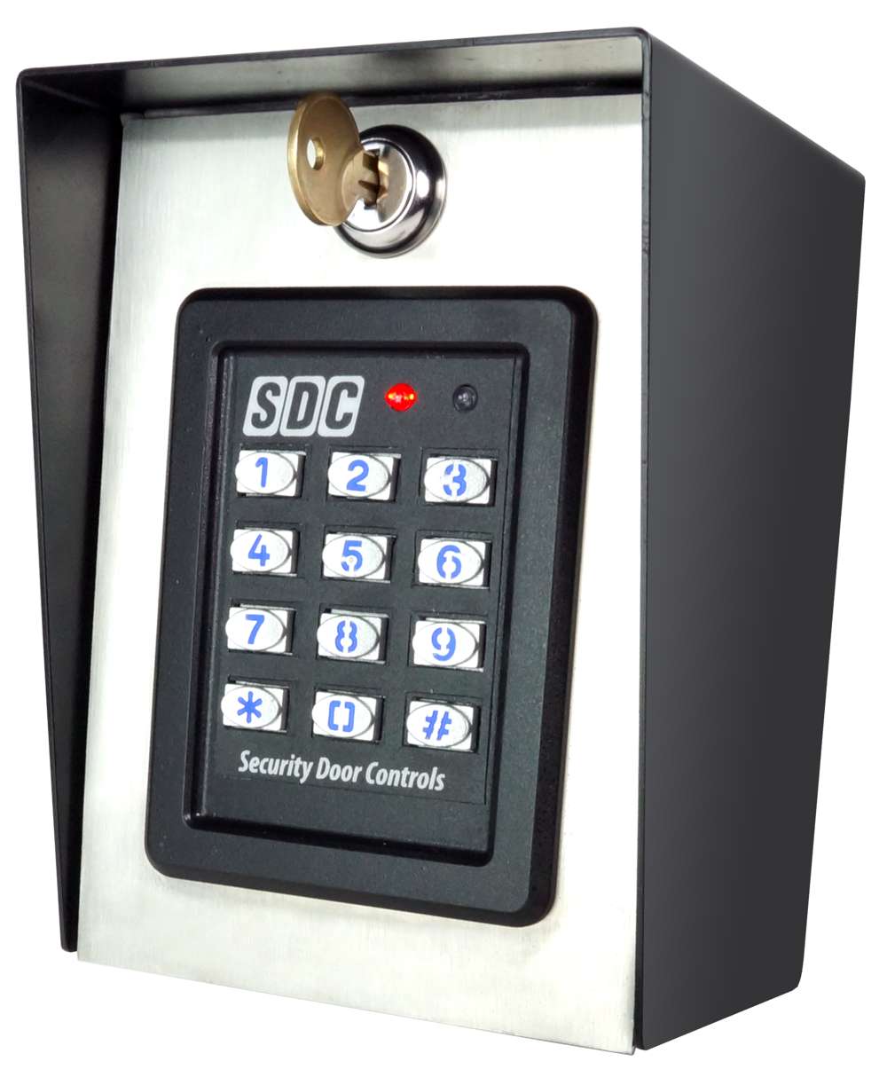 SDC’s 926 series outdoor standalone digital keypads with incorporated privacy and weather protected housing are designed to control doors or gates with up to 500 users. Each user is assigned a personal identification number (PIN). Keypad entry of a valid four-to-six-digit code activates one or both output relays.
