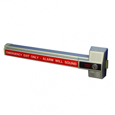 The ECL-230 is a code compliant, battery alarmed, rugged dead bolt, panic device with steel plate and photo-luminescent sign providing managed security and a 100 decibel alarm for secondary exits.