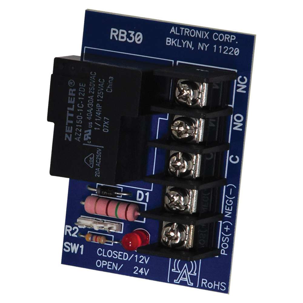 Altronix RB30 Series Snap Track mountable relay is designed for continuous duty. This rugged and dependable relay will handle any switching application.