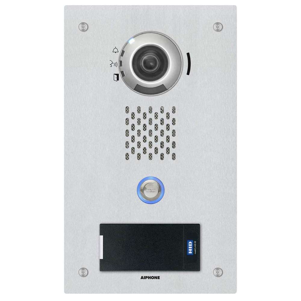 The IX-DVF-P SIP Compatible Flush Mounted IP Video Door Station comes with a vandal resistant stainless steel faceplate with HID® multiCLASS® Reader.