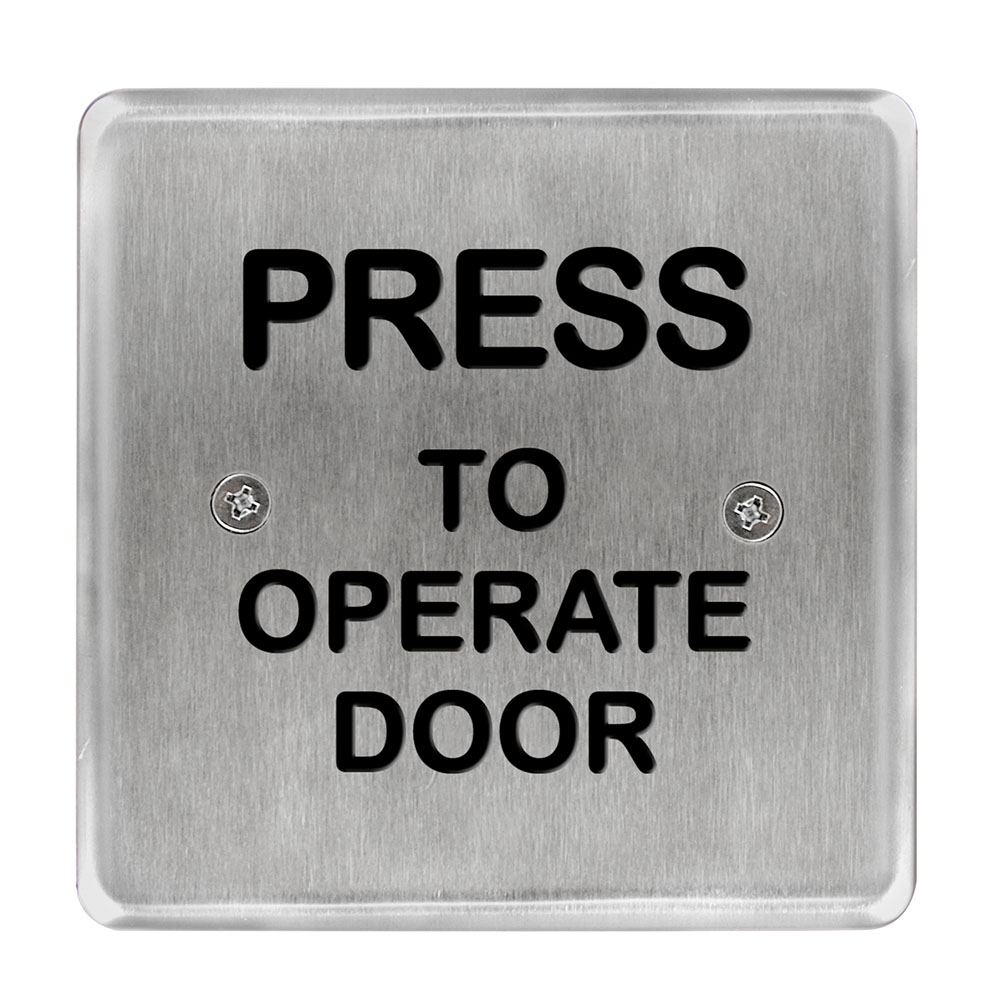 The BEA 10PBS45POD Stainless Steel Push Plate, 4.5" Square is a push plate with “press to operate door” text only made of 1/16 inch thick stainless steel for maximum durability. This push plate improves overall door access, enhances accessibility for those with disabilities, and seamlessly integrates with an automatic door’s activation. This ADA compliant push plate is 4.5 inchs square and is compatible with both surface and flush mount.