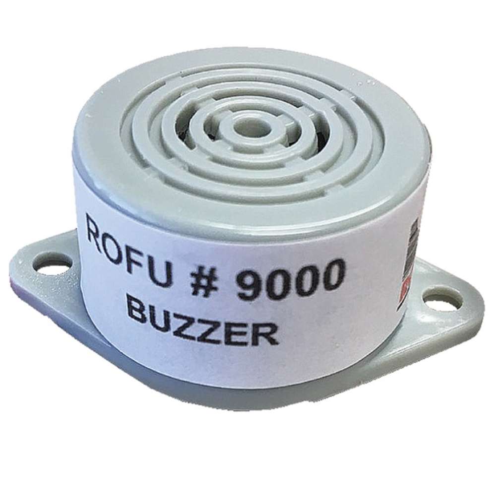 The ROFU 9000 Electric Buzzer, Rated for 7-30 VDC. 1" x .63" x .57".