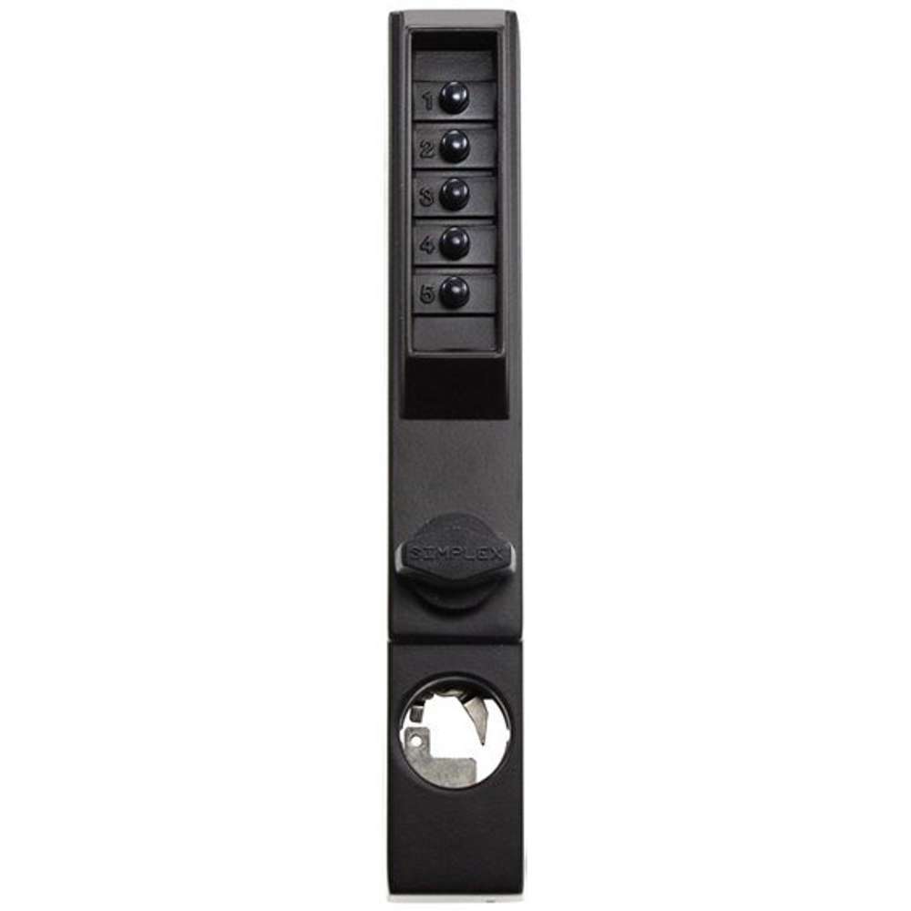 The Simplex 3000 Series mechanical pushbutton lock provides exterior access by combination for narrow stile aluminum glass doors. This fully mechanical lock eliminates the material and labor expense of battery replacements, has a single access-code and is programmed via the keypad without removing the lock from the door.