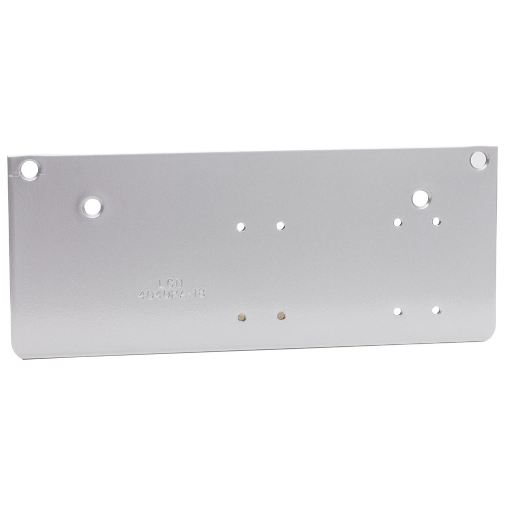 Required for parallel arm mounting where top rail is less than 5 1/2” (140 mm), measured from the stop. Plate requires 2” (51 mm) minimum top rail.