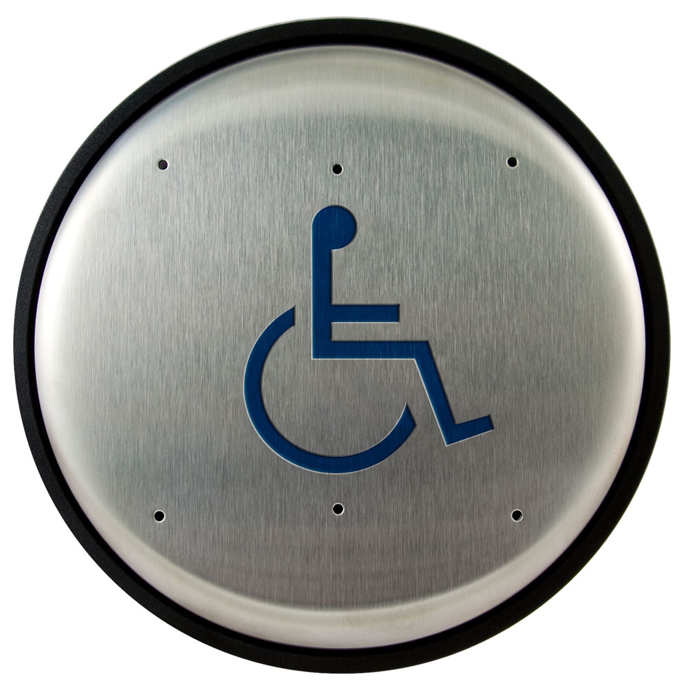 - Engraved blue filled handicap symbol conforms to most accessibility codes