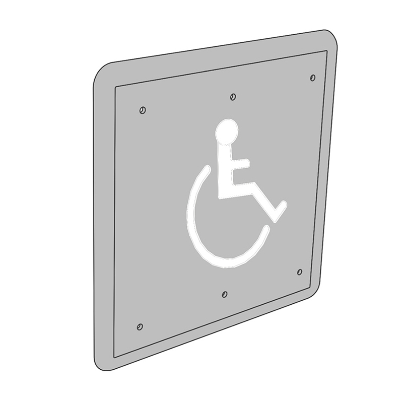- Engraved blue filled handicap symbol conforms to most accessibility codes