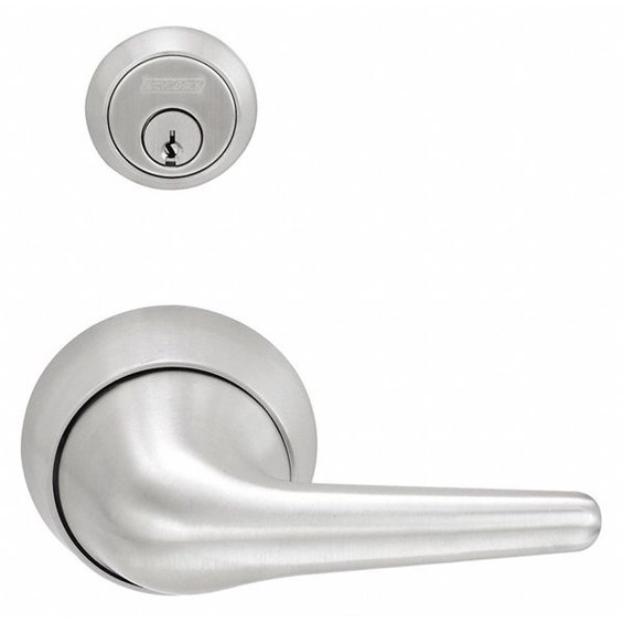 - Key cylinder outside with lever (or knob);lever only-inside; latchbolt and deadlockingauxiliary latch