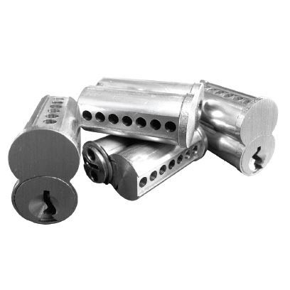 KSP Small Format Interchangeable Cores (SFIC) in a variety of keyways. Available 6 or 7 pin.